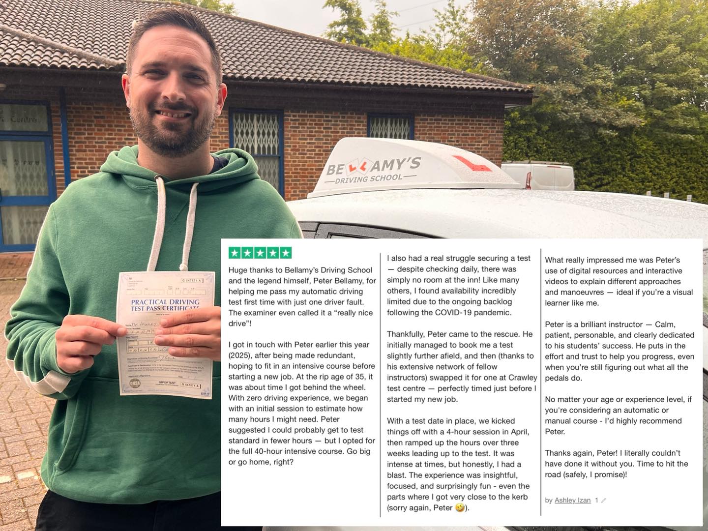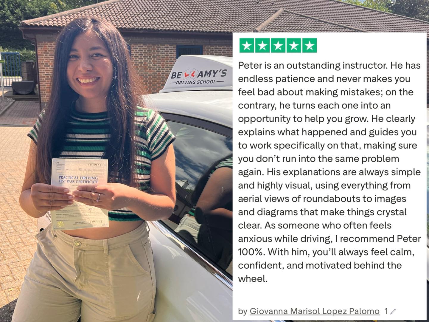 If you have passed your driving test having received instruction from Peter Bellamy we would love to hear from you so we can add your testimonial to those on this page.